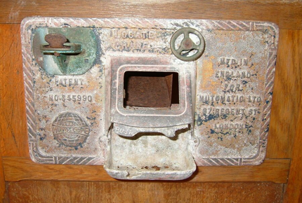The Cresset, improved pickwick. Engelse wandautomaat van rond 1910. Missend de glasplaat, metalen speelballen, papieren instructies en een houten deurtje.