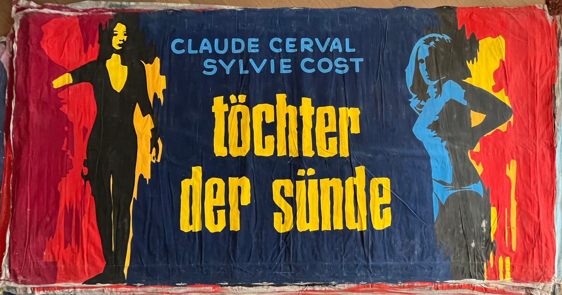 Plusminus 300x150 cm groot. Gebruikt voor promotie van de film in de Bioscoop van Essen, genaamd Lichtburg. Destijds al de grootste bioscoop van duitsland.