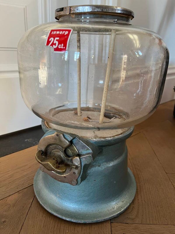 Oude originele pindapot kaugumballen pot. Helaas geen sleutels en een oude barst in het glas.