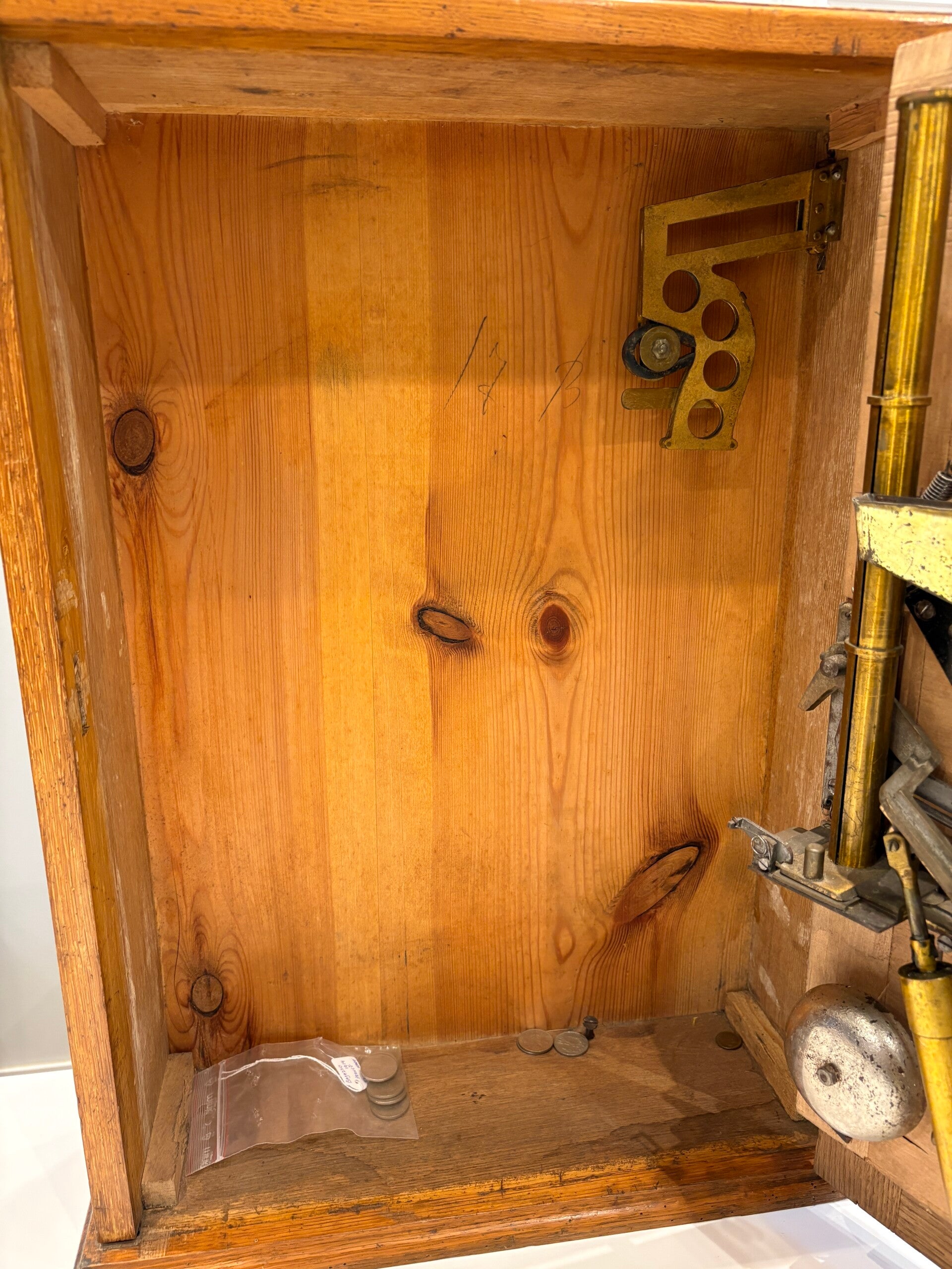 Enkele kleine beschadigingen zoals verwacht bij een kastje van >100 jaar oud, zie rechter hoek van het kastje.
