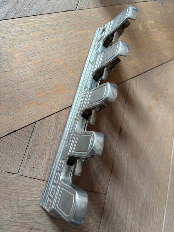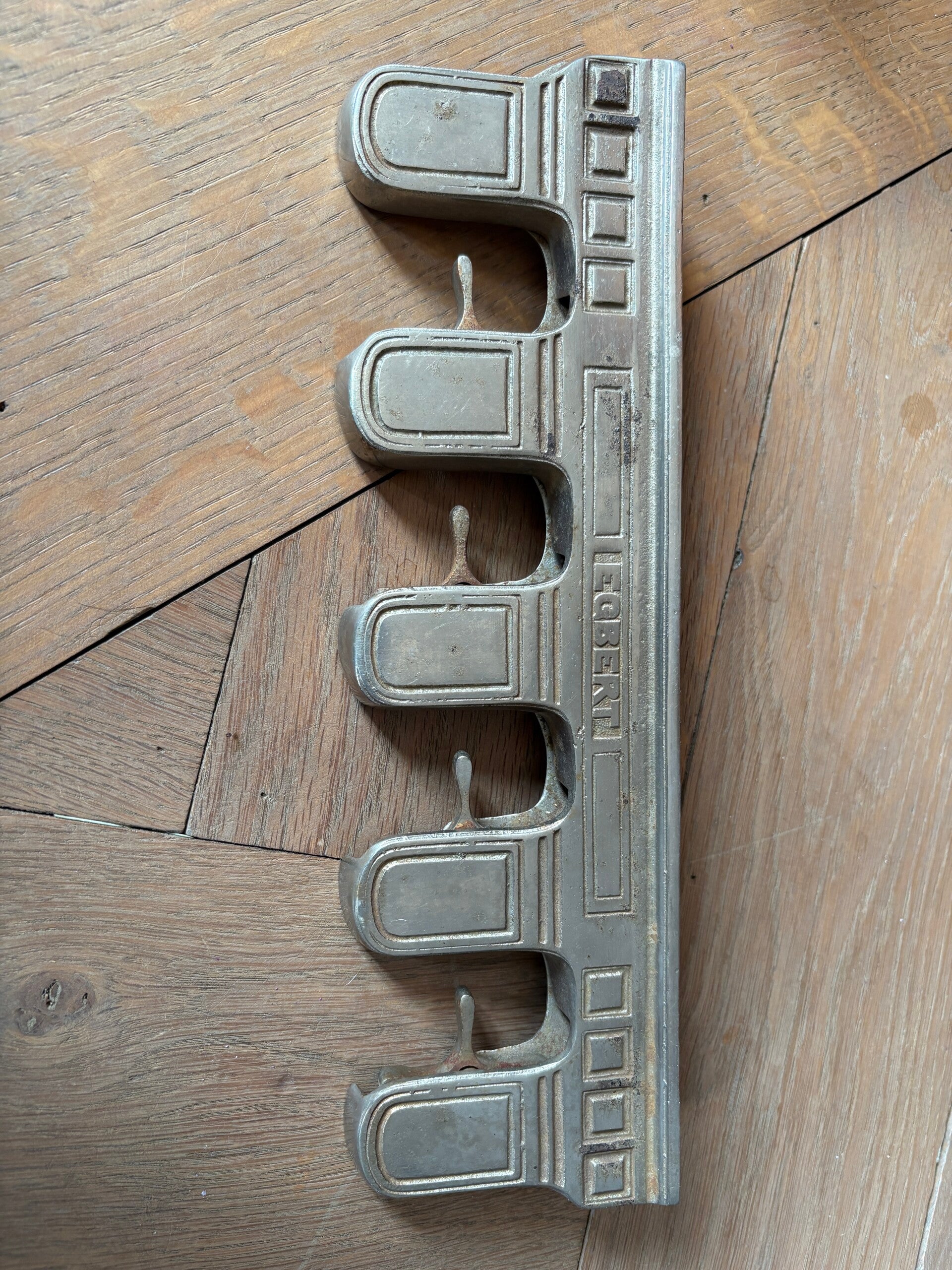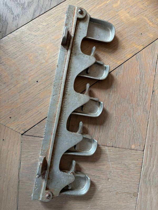 Made in Germany, Egbert.Gietijzer, vernickeld, gemaakt rond 1880, voor 4 biljart keu’s of 4 wandelstokken. Voor wandmontage.Gemerkt met: Name - Gesetzlich-Geschutzt-1832.30 cm breed.