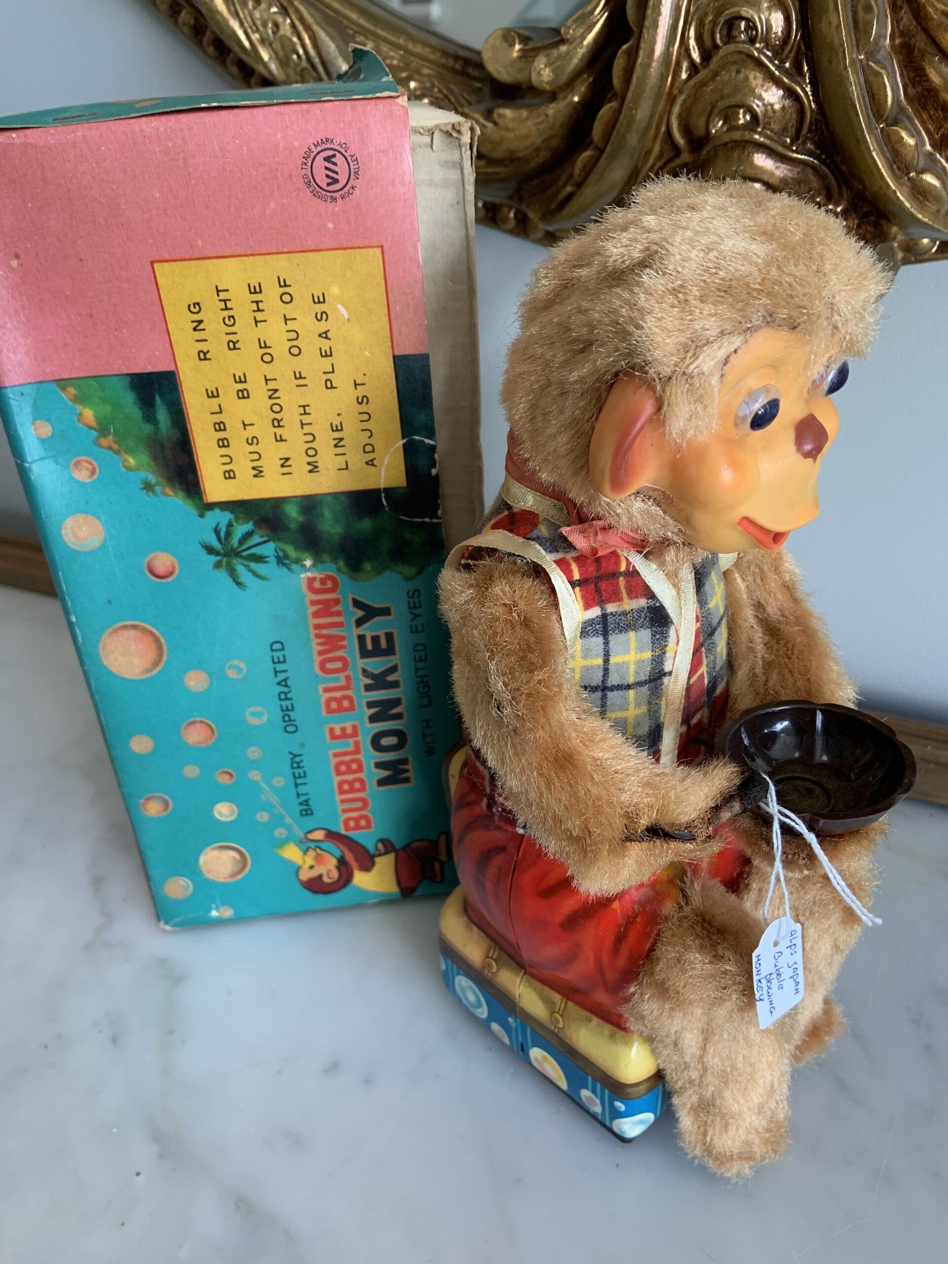 Alps Bubble Blowing MonkeyAlps Japan, bubble blowing monkey. 28 cm groot, goed werkend met originele doos.150 euro