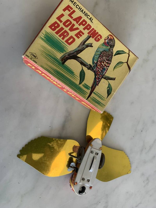 Yone, Made in JapanBlikken opwindbaar flapping bird / vlinder.in goede werkende staat met origineel doosje.1 vleugel heeft een reparatie, maar niet storend. (zie foto)35 euro