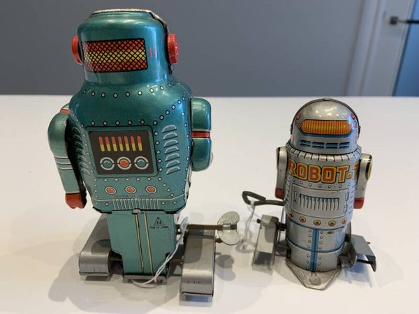 Groene Robot, Mighty Robot met werkend uurwerk en werkend vuursteentje.