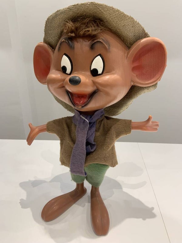 Figuur van 50 cm groot uit 1956, plastiek pop met vilten kleding. Destijds uitgebracht als reclame pop voor bioscopen waar de tekenfilms van Speedy werden getoond.