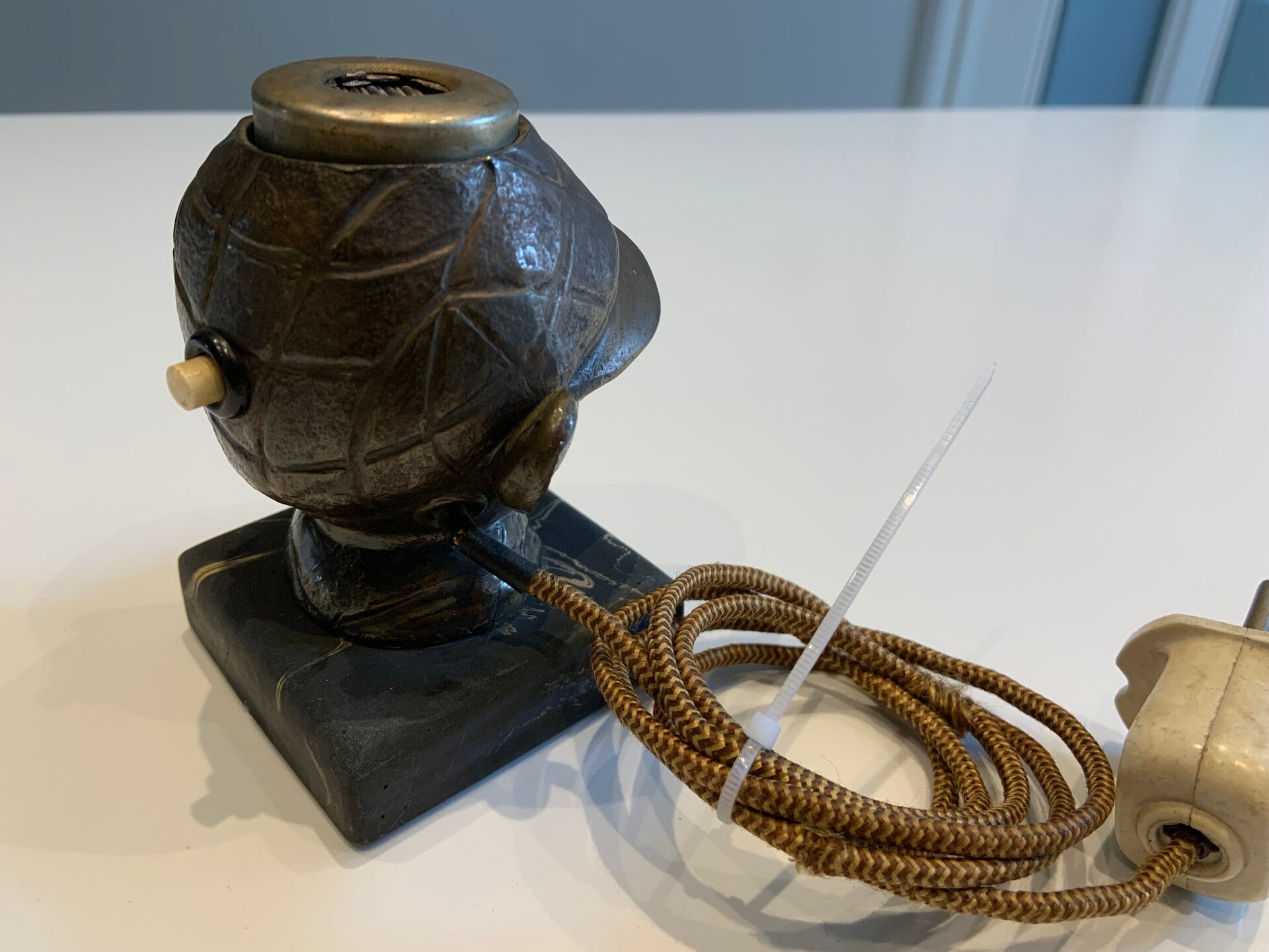 Oude jaren 30 sigaren aansteker. In de vorm van een jongens hoofd op een marmer voetje van 6,5 cm x 6,5 cm groot.