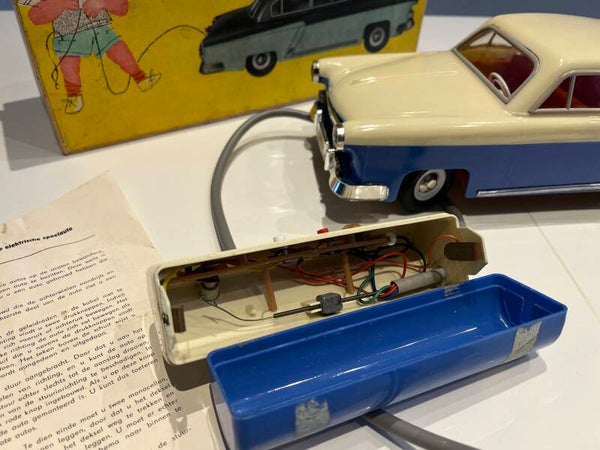 Op batterijen werkende speelgoedauto met afstandsbediening, gemaakt in Oost-Duitsland, Democratische Rep DDR door Presu-Elmes in originele doos.